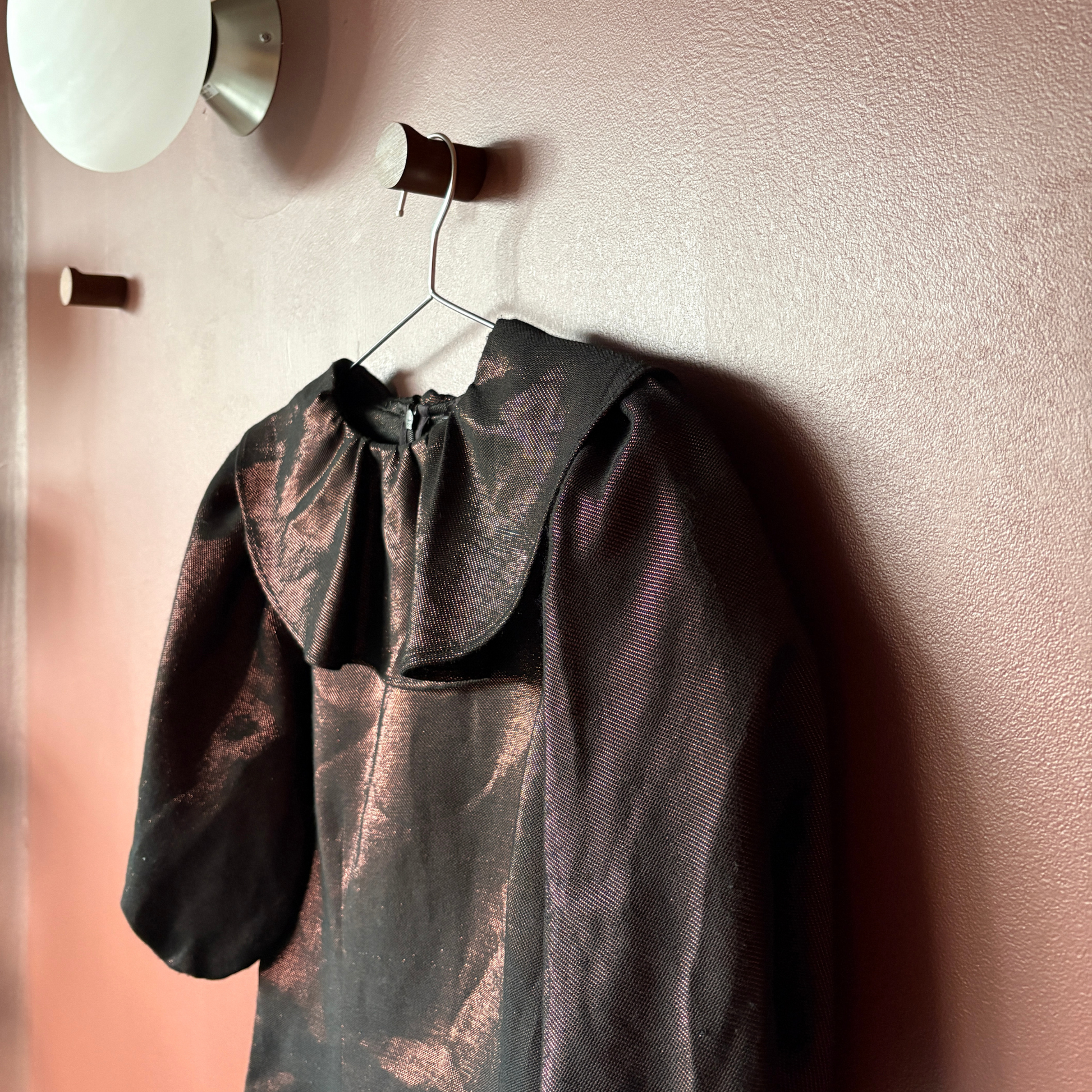 Pair with metallic heels or ankle boots and micro dot or opaque tights, finish with statement earrings for a polished, festive-ready outfit.