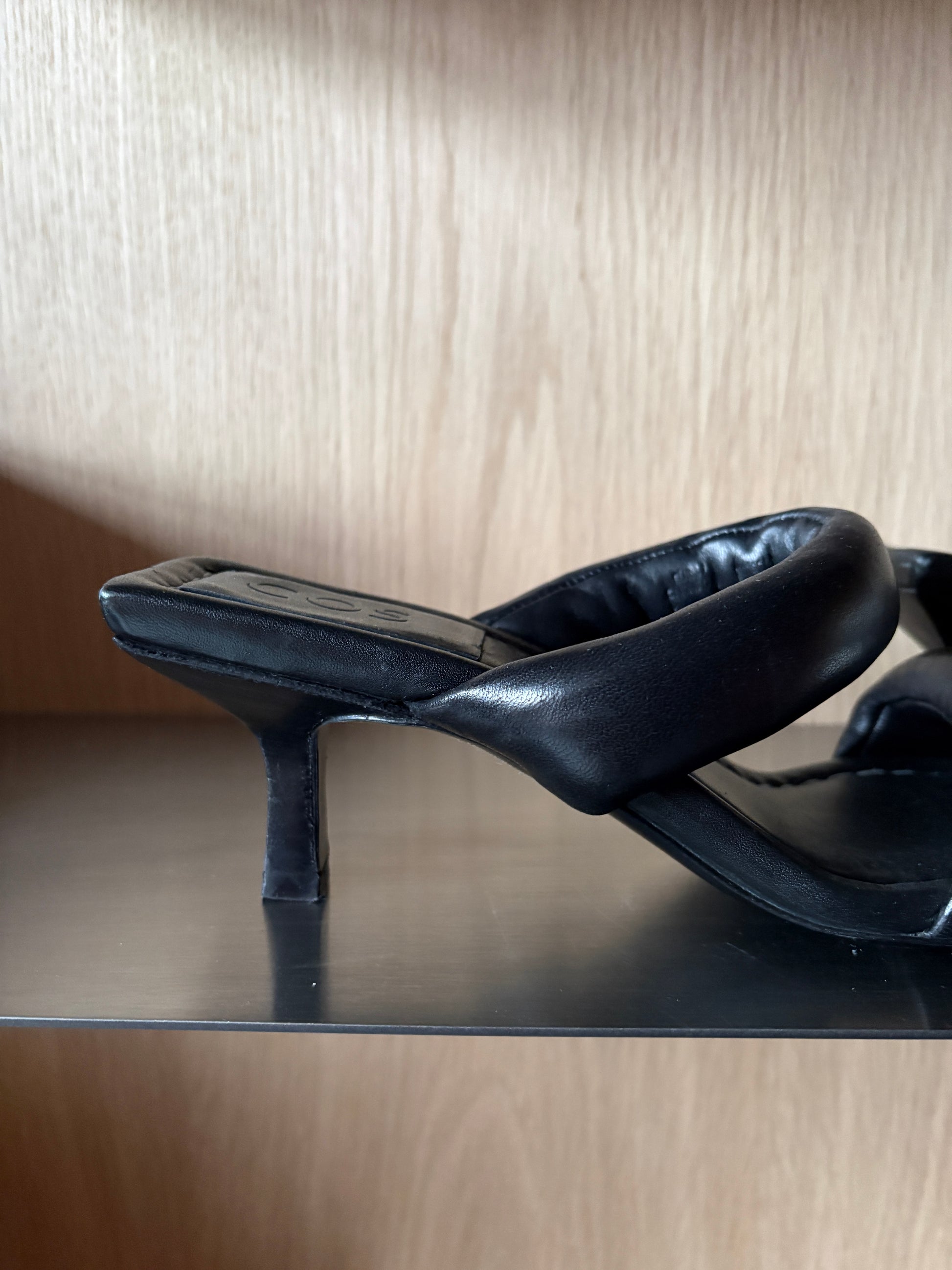 Channel effortless 90's minimalism with these sleek Black Leather Tube Mules from COS. Sculptural and understated, they’re the kind of shoes that instantly elevate any look — from a slip dress to barrel leg jeans. The soft leather finish and clean tubular straps nod to classic design, while the square toe keeps things contemporary.