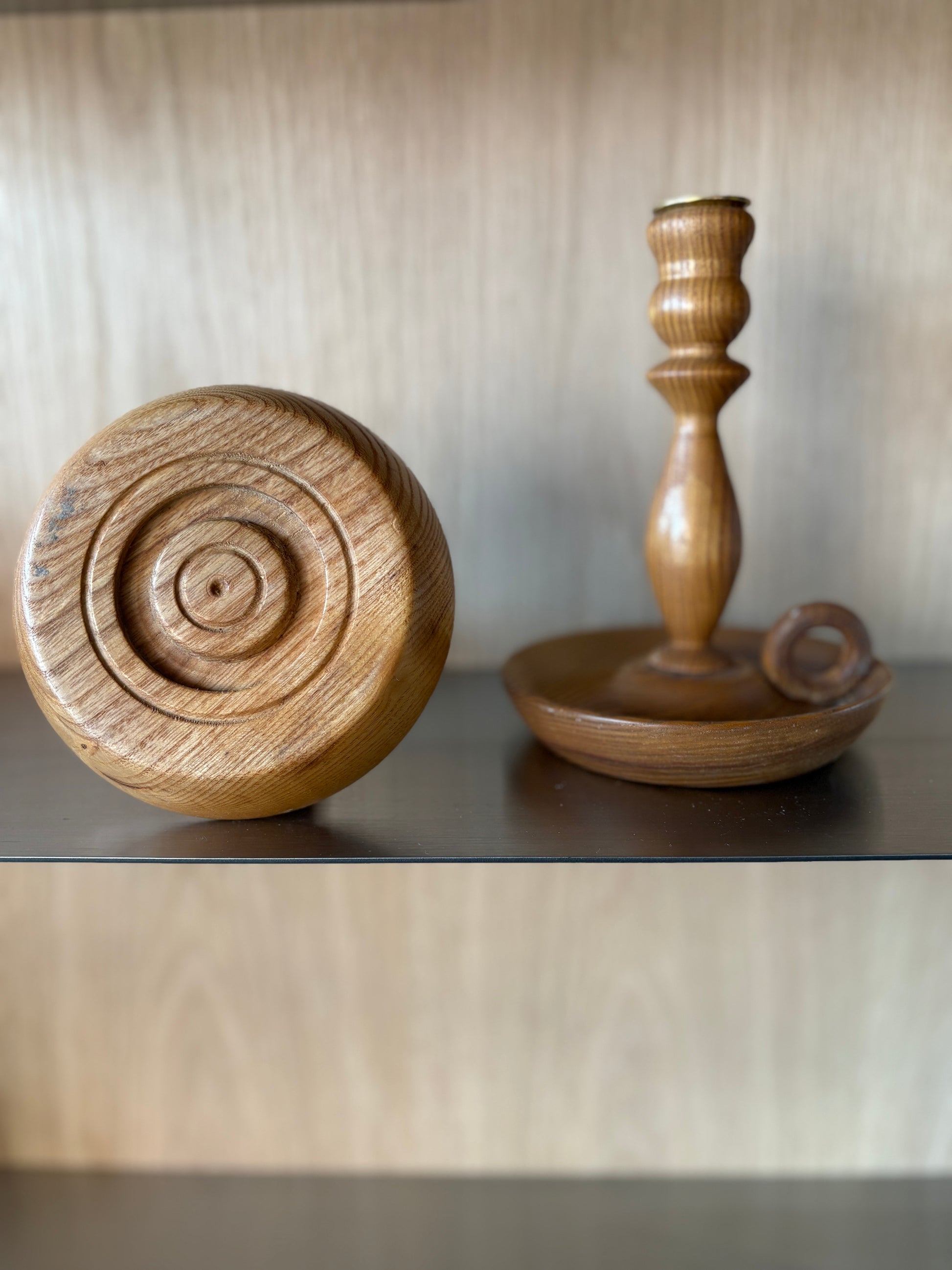Bring warmth and character to your home with this pair of hand-turned wooden candle holders. Each piece showcases its own unique grain and natural imperfections, making them truly one-of-a-kind. Designed for taper candles, they pair beautifully with sustainable wax options like beeswax, adding a subtle, rustic charm to any space.