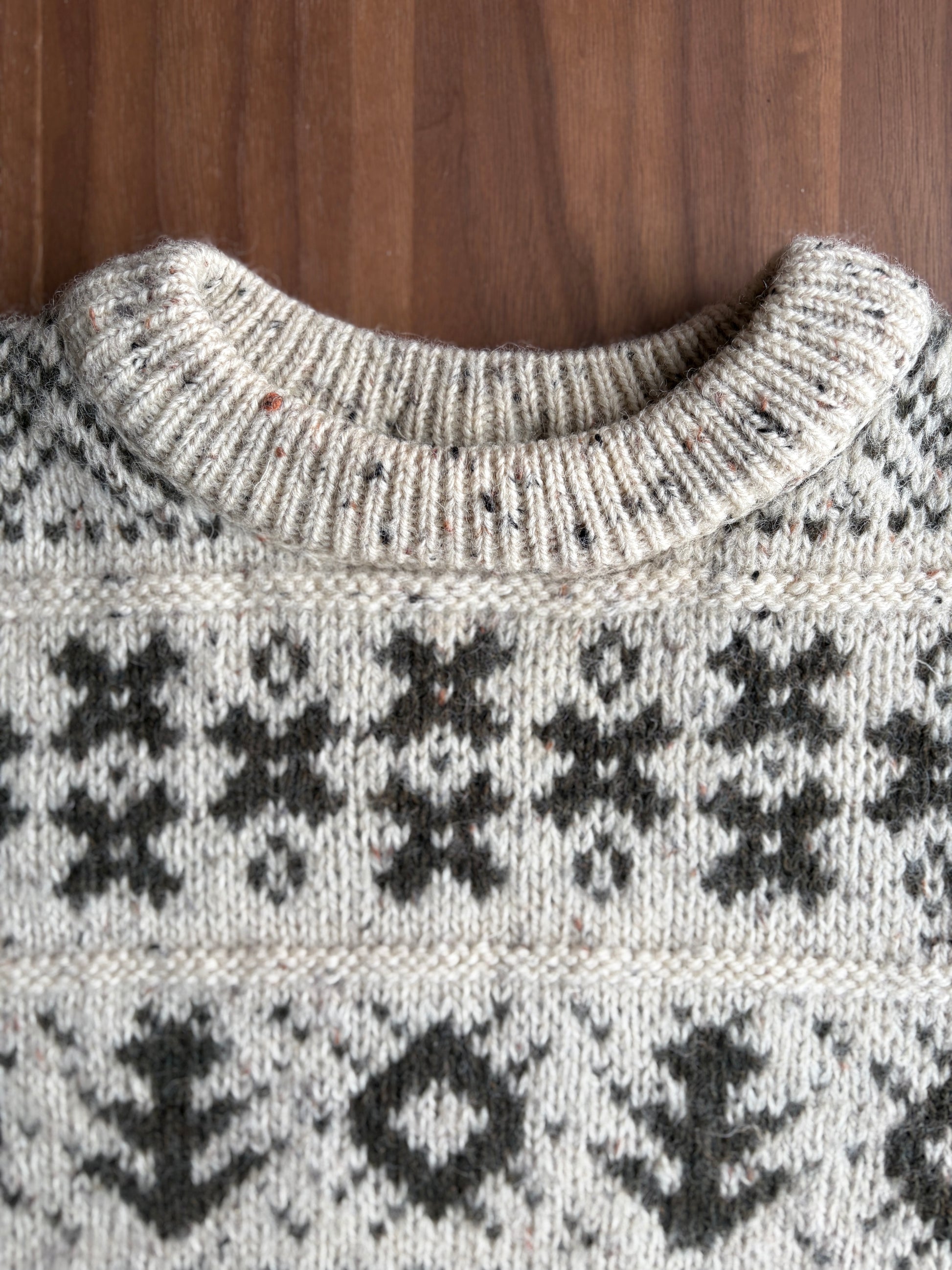 Vintage Cream Olive Folklore Jumper - 100% Wool