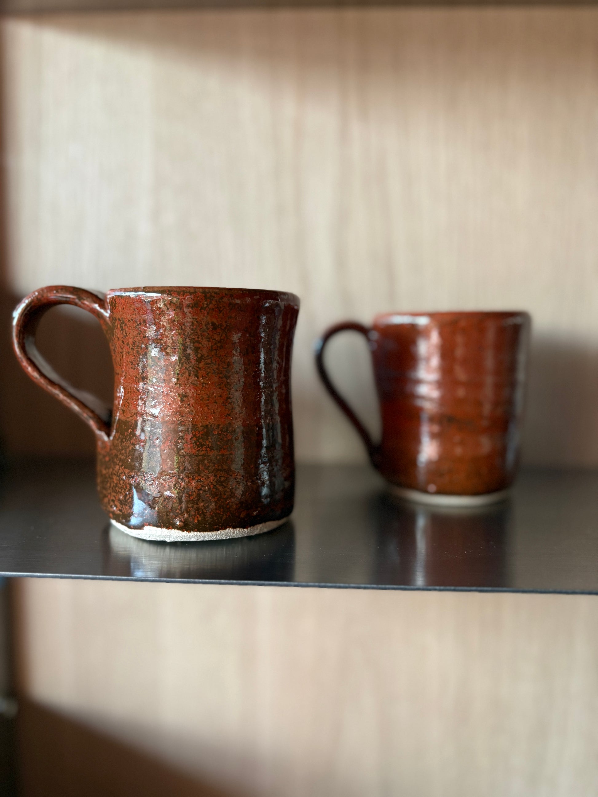 A beautifully weighty wheel-thrown stoneware mug in a warm rust glaze. Its organic form and subtle irregularities reflect the hand of a skilled maker, giving it a grounded, tactile feel that’s comforting to hold. Ideal for morning coffee or evening tea, it brings a quiet, crafted presence to everyday rituals.